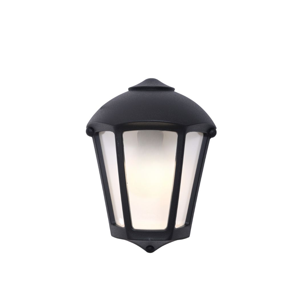 Farol de media altura de estilo moderno con portalámparas E27, fabricado en resina resistente a impactos, estabilizado contra rayos UV, antioxidante y anticorrosivo.