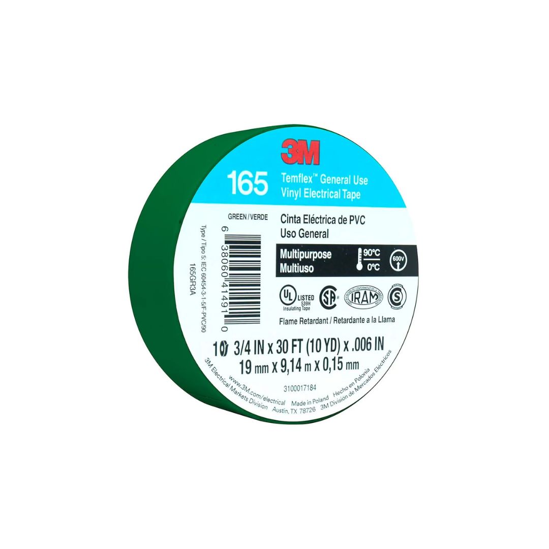 La CINTA AISLADORA TEMFLEX VERDEEléctrica de PVC 3M™ Temflex™ 165 es una cinta aislante de vinilo multiuso de buena calidad. Tiene gran resistencia a la humedad y a las condiciones climáticas variables. Es una cinta de cloruro de polivinilo (PVC) ignífuga y adaptable. La cinta 3M Temflex 165 proporciona una gran protección mecánica con un volumen mínimo. Es una cinta aislante certificada por CSA y listada por UL. No se utilizan solventes en el proceso de fabricación.