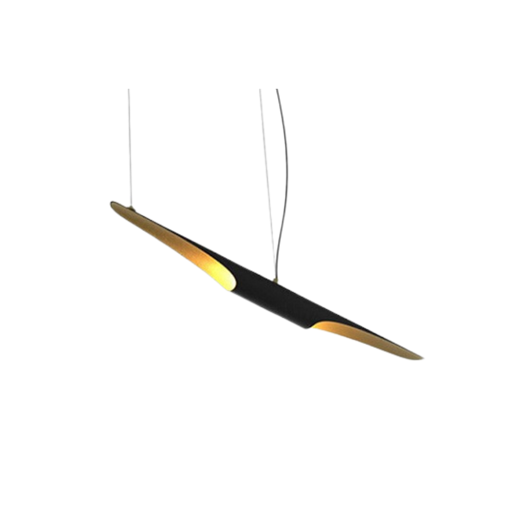 Con un diseño elegante, mide aproximadamente 70 cm de largo x 8 cm de diámetro. Su bajada con cable y tensor le permite ajustarse perfectamente a cualquier espacio. Disponible en acabado negro con interior dorado, esta lámpara incluye un portalámparas G9 para un rendimiento óptimo y un toque de sofisticación.