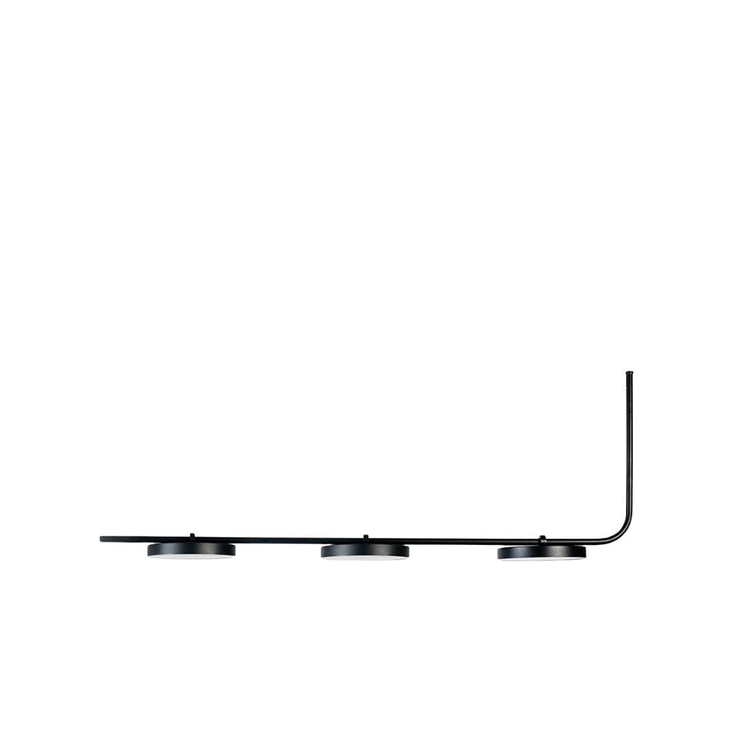 Plato de hierro torneado a mano en barral de tres luces de hierro doblado. Difusor acrílico opal iluminación. Cable envainado transparente y base de una luz torneada por balancín con sistema de ajuste fácil.