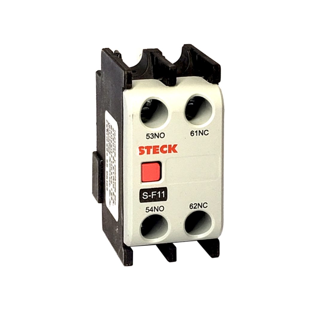 El contacto auxiliar frontal SF11 de Steck es un accesorio diseñado para ampliar las funciones de los contactores, permitiendo incorporar señalización, enclavamientos y control adicional en sistemas eléctricos. Su montaje frontal facilita una instalación rápida y práctica en tableros.