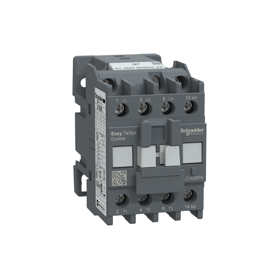 Contactor Tripolar 12A 380VCA Na EasyPact TVS para aplicaciones de motor de hasta 120 A 59kW@440V. Proporciona una bobina de CA de 380V y 50/60 Hz, contactos auxiliares incorporados de 3 NA, y conexiones de alimentación y control mediante terminales con abrazaderas de tornillo. 120mm de ancho para velocidades de operación estándar de hasta 1200 ciclos por hora. Proporciona confiabilidad y durabilidad estándar con una durabilidad eléctrica de 0.8 Mciclos de AC-3 y 4 Mciclos de durabilidad mecánica. Puede cubrir de -5°C a 55°C de temperatura de trabajo y montarse por carril DIN, sin disminuir hasta 3000 m de altitud. Certificación de múltiples estándares (IEC, CCC, EAC) y cumplimiento de Green Premium (RoHs/Reach).