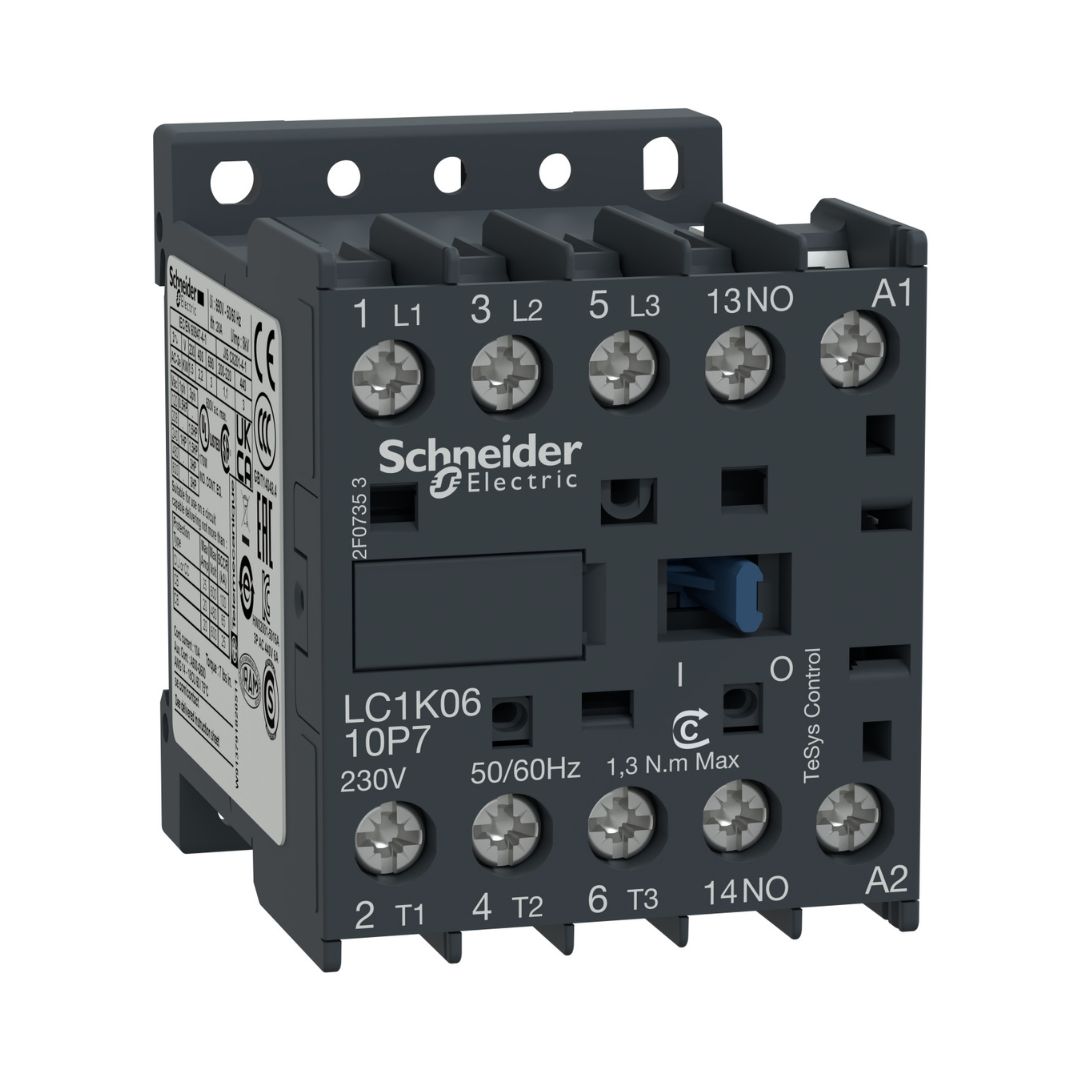 Contactor Tripolar 16A 110Vca NC TeSys K, 3 polos (3 NA), para aplicaciones de control de motores de hasta 16 A/690 V CA-3 (7.5kW@400V). Proporciona una bobina de CA de 110 V y 50/60 Hz, un contacto auxiliar incorporado de 1 NA y conexión mediante terminales de abrazadera de tornillo. Para velocidades de funcionamiento hasta 600 ciclos/hora y entornos hasta 50°C, proporciona confiabilidad y durabilidad a las aplicaciones estándar. Muy compacta (45 mm de anchura), montaje en riel DIN o fijación con tornillos. Certificación de múltiples estándares (IEC, UL, CSA, CCC, EAC), compatible con Green Premium (RoHS/REACh).