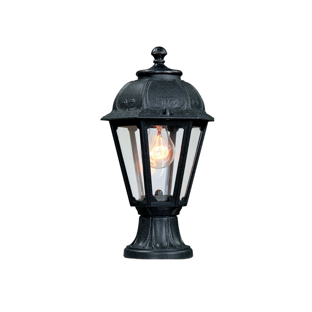 Farol hexagonal E27 de estilo clásico, fabricado en resina resistente a impactos, estabilizado contra rayos UV, resistente al óxido y a la corrosión. Construcción modular, ideal para instalación en poste, colgante o en pared. Se suministra opcionalmente con lámparas LED de larga duración y eficiencia, con certificación TÜV-CB, aptas para uso en exteriores. Aislamiento clase II, grado de protección IP55.