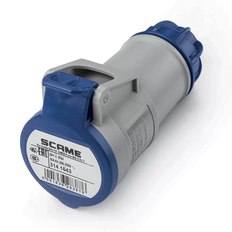 XENIA es una gama de prolongadores industriales de 16A a 32A con cuerpo monobloque en tecnopolímero, borne de tornillo y sujetacable externo.