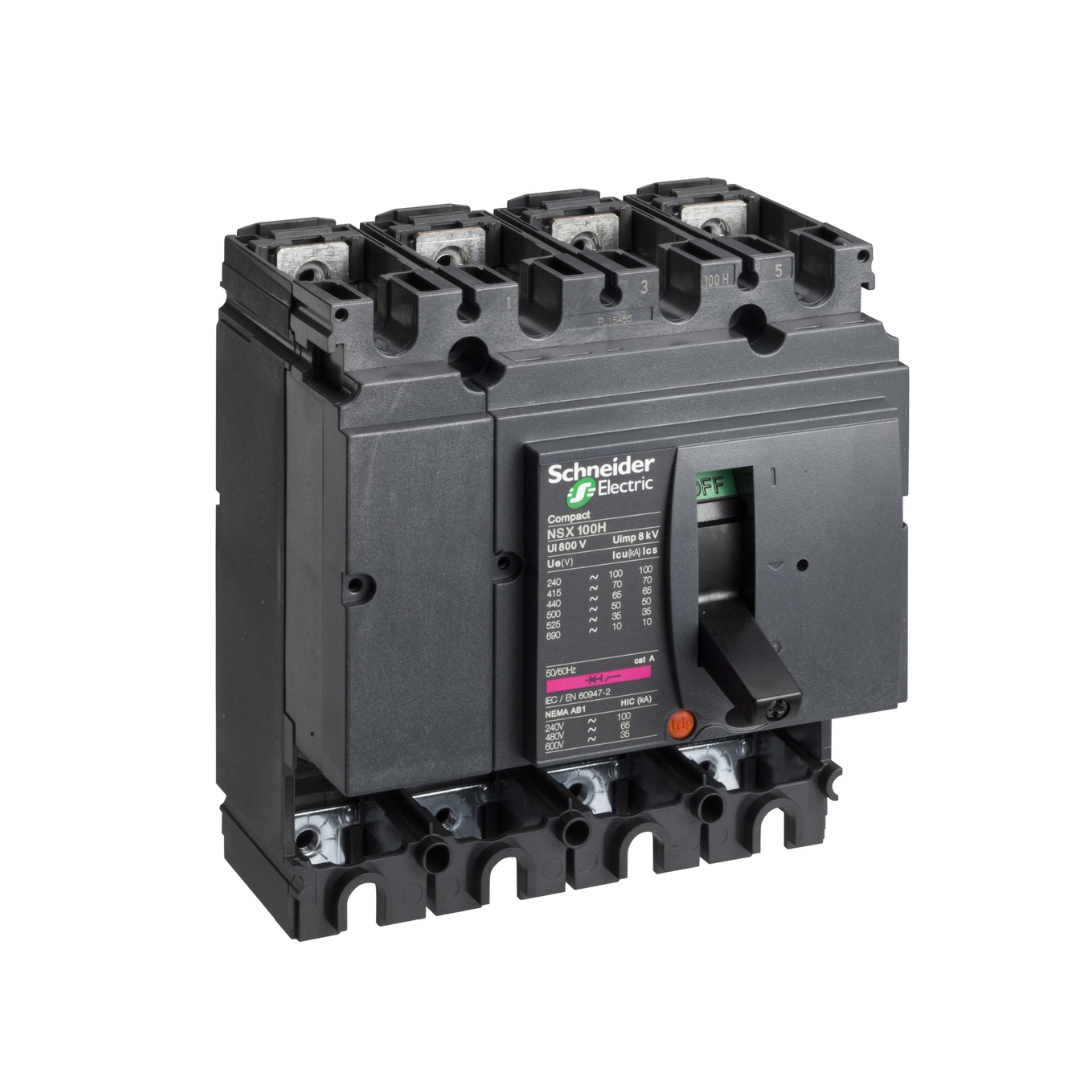 Garantiza el cumplimiento de estándares internacionales (IEC 60947), CCC, EAC y especificaciones marítimas. El Compact NSX100N es parte de la arquitectura EcoStruxure Power de Schneider Electric.