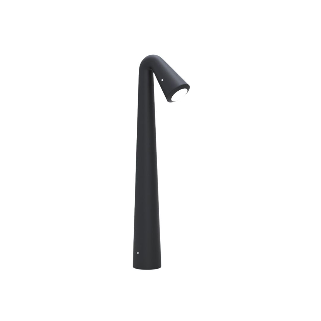 Baliza LED de diseño moderno con emisión de luz dirigida, fabricada en resina resistente a impactos, estabilizada contra rayos UV, resistente a la oxidación y la corrosión. Doble uso: apta tanto para instalación en estaca como en el suelo. Incluye lámpara LED G9 de larga duración y eficiencia, certificada por TÜV-CB. Aislamiento clase II, grado de protección IP 67.