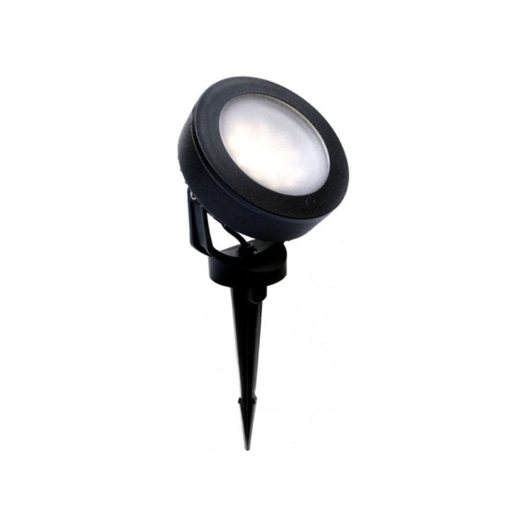 Proyector a LED con una o dos luces, hecho en material de resina a prueba de golpes, resistente a la oxidación, corrosión y a los rayos UV. Ideal para ser instalado en ambiente interior y exterior, puede montarse directamente en la pared, en el techo y en el suelo o utilizando una pequeña estaca. La cubierta cuadrada, a anillo o visera, no lleva tornillos a la vista. Incluída una bombilla LED GX53 certificada por TÜV-CB con Kelvin ajustable, larga vida y alta eficiencia. El proyector se puede regular a 180°. Clase de aislamiento II, grado de protección IP66.