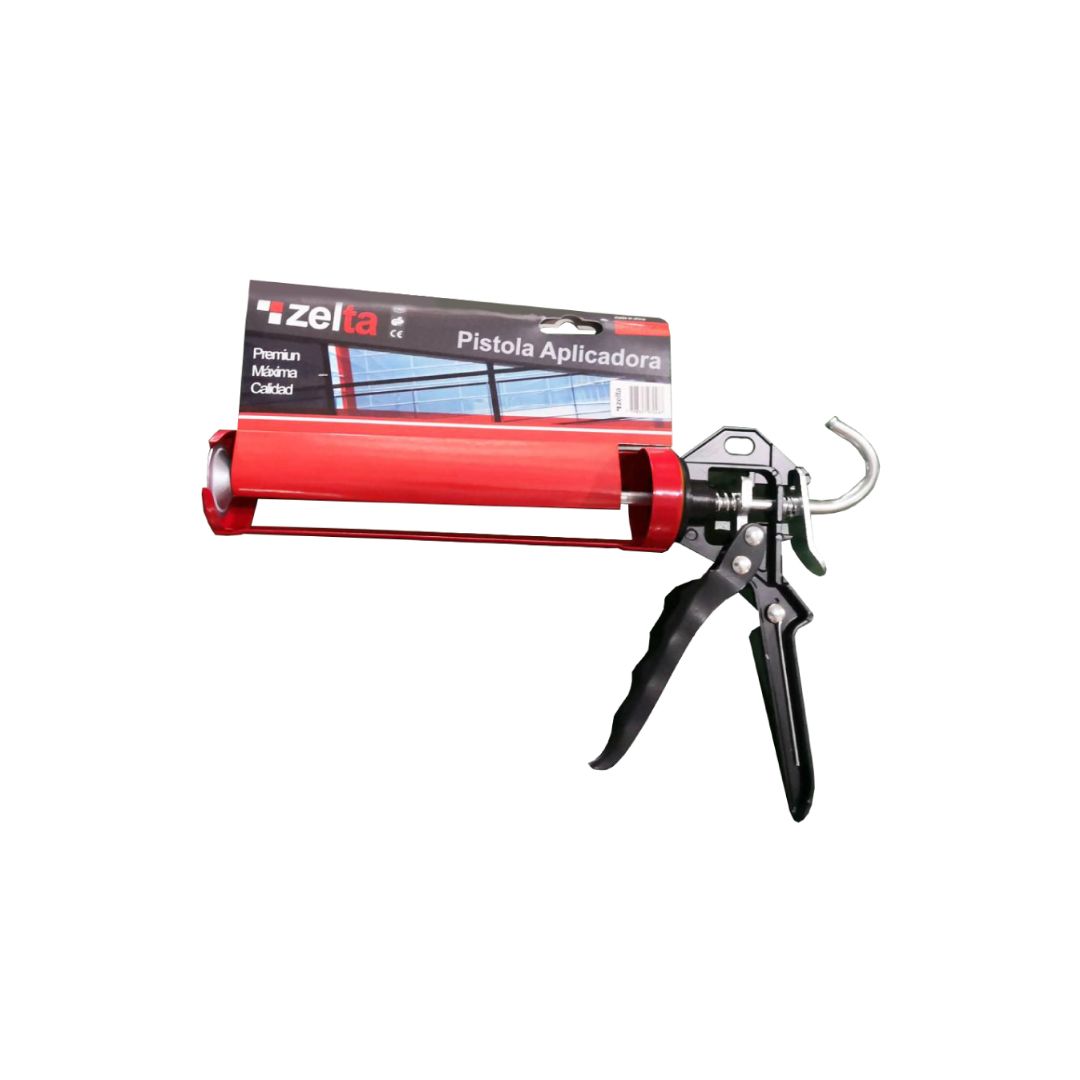 Pistola premium aplicadora para silicona, fabricada en materiales de alta calidad. Con estructura metálica reforzada, mecanismo a cremallera y gatillo liberador de presión.
