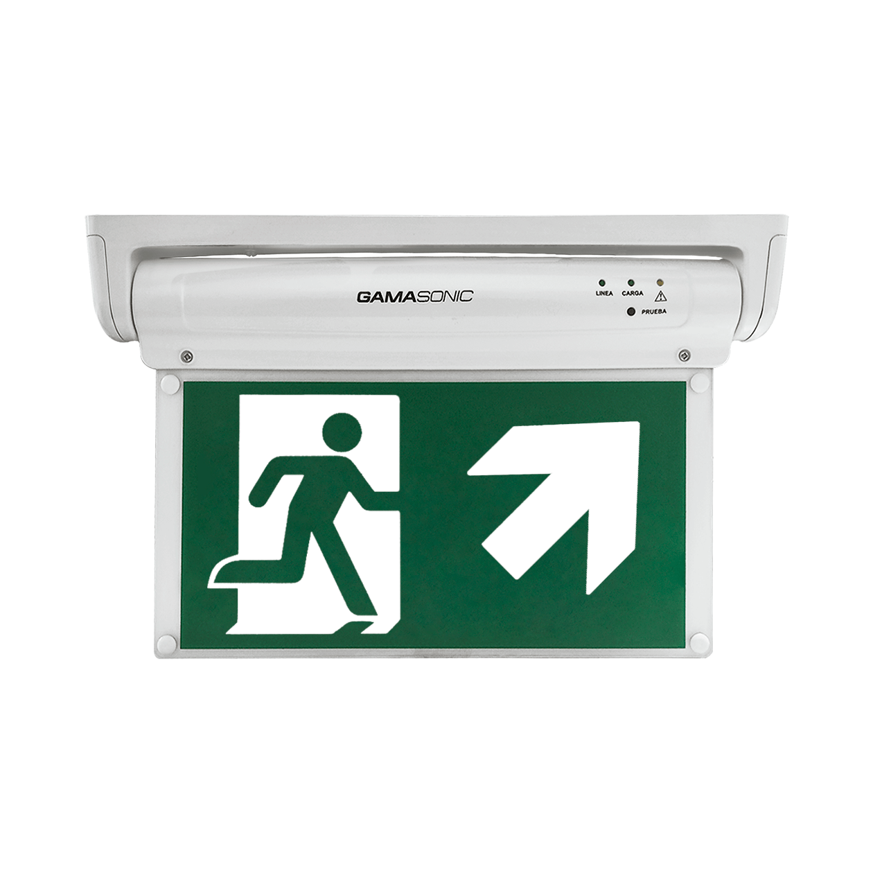 Posee 11 LEDs blancos de alta luminosidad y está fabricado con tecnología fotométrica de Placa Difusora Óptica, que asegura la uniformidad en la distribución de luz. Posee una tecla para seleccionar funcionamiento en modo permanente o solamente en emergencia. Posee amplia variedad de pictogramas. Los pictogramas HOMBRE-FLECHA son doble faz para que se puedan visualizar de ambas caras.