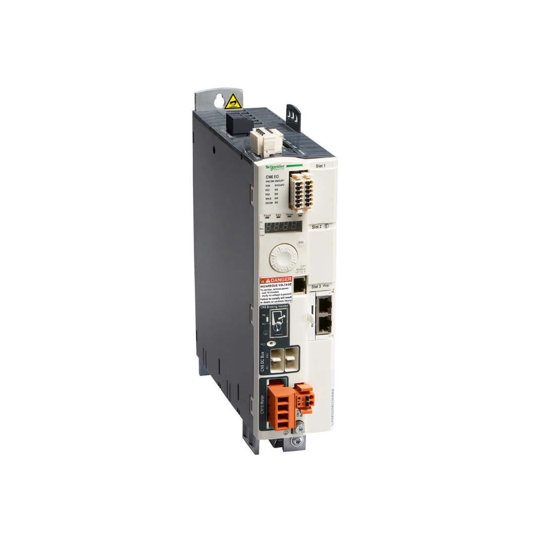 Este servovariador Lexium 32 funciona con una tensión de alimentación nominal de 208 a 480 V CA. Puede alimentar motores síncronos trifásicos BMH o BSH y tiene una salida de corriente continua de 10 A a 8 kHz. El tamaño compacto del servovariador y el servomotor asociado proporcionan máxima potencia en un espacio mínimo. Este servovariador está diseñado específicamente para máquinas industriales. Ofrece alto rendimiento, potencia y simplicidad de uso en aplicaciones de control de movimiento.