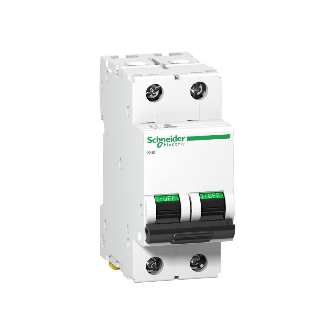 Este producto Acti9 TERMICA 2 POLOS K60 es un disyuntor miniatura de baja tensión (MCB). Es un interruptor automático 2P con 2 polos protegidos y 10A en corriente nominal y curva de disparo C. La capacidad nominal de apertura de cortocircuito llega hasta 4500A a 400VCA de conformidad con el estándar IEC 60898-1 y de conformidad con el estándar.