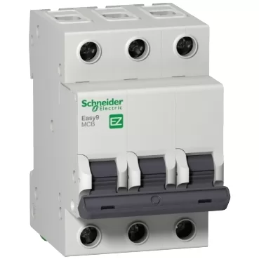 El interruptor termomagnético, o llave térmica, Easy9 de Schneider Electric de baja tensión esta fabricado para la protección contra sobrecargas y cortocircuitos, gracias a su sistema de protección termomagnética. Este producto tiene 3 polos, capacidad de 10A, curva de disparo tipo C y poder de corte de 4,5kA, 230/400V AC.